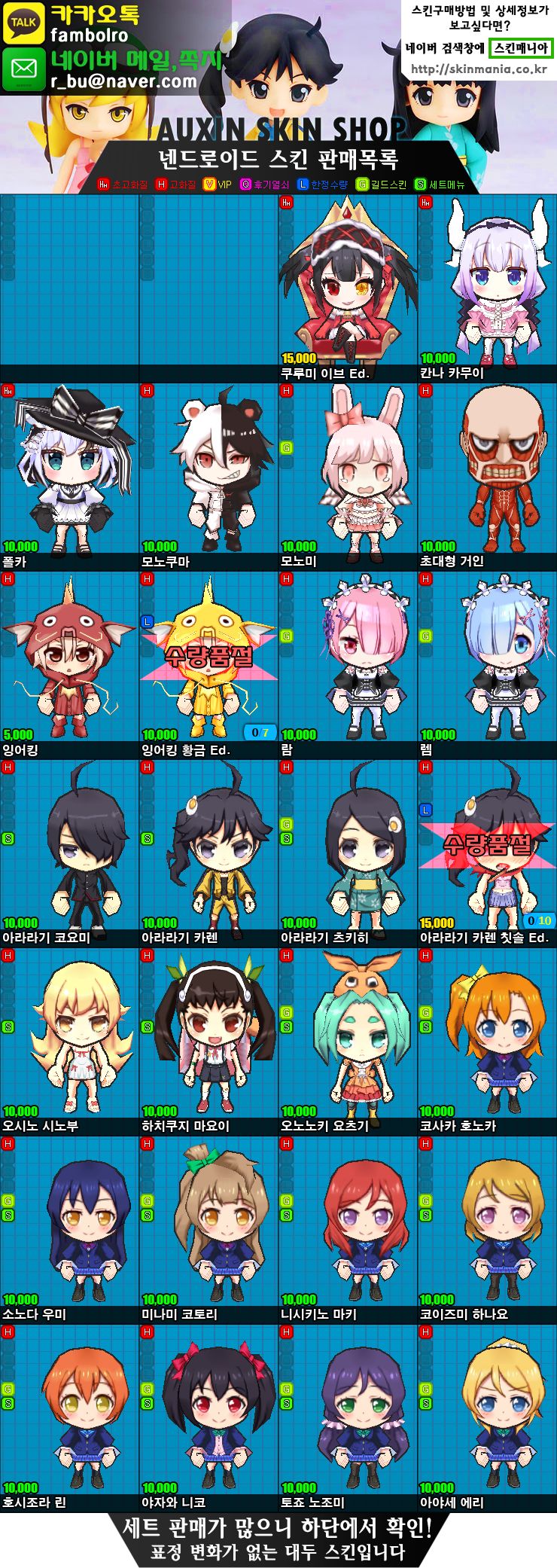 고화질스킨은 적용비 +1000원을 더 준비하셔야합니다.
