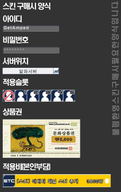 | ※ 길스를 등록했던 길드가 해체되거나 스킨을 덮어씌우게되면 구매 기회가 복구됩니다 (구매자분이 자진해서 알려주시면 '기본 스킨값'만큼의 요금을 페이백 해드립니다 ※ 거래내역 필수) |