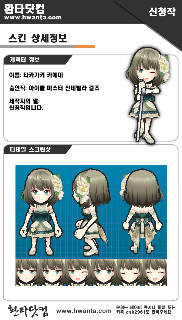 04 05 ◎ 환타/신청작 스킨 타카가키 카에데 반응형 공유하기 게시글 관리 스킨매니아 사업자 정보 표시 스킨매니아 | 황희수 | 경기도 양평군 용문면 삼성리 909 | 사업자 등록번호 : 132-27-86092 | TEL : 010-6210-0374 | 통신판매신고번호 : 2016-경기양평-0150호 | 사이버몰의 이용약관 바로가기 '◎ 환타 > 신청작 스킨' 카테고리의 다른 글 산젠인 유카리코 (0) 2019.04.17 카루마 메이 (0) 2019.04.07 네로 클라우디우스 (0) 2019.04.01 타마모노마에 (0) 2019.03.08 RFB (0) 2019.01.29 COMMENT
