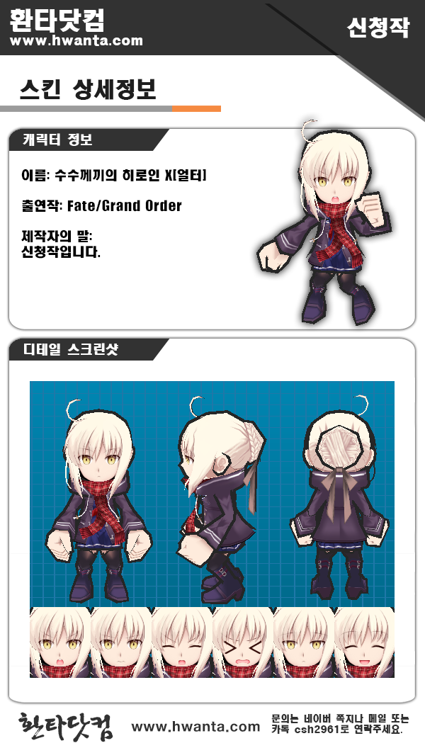 04 29 ◎ 환타/신청작 스킨 수수께끼의 히로인X[얼터] 반응형 공유하기 게시글 관리 스킨매니아 사업자 정보 표시 스킨매니아 | 황희수 | 경기도 양평군 용문면 삼성리 909 | 사업자 등록번호 : 132-27-86092 | TEL : 010-6210-0374 | 통신판매신고번호 : 2016-경기양평-0150호 | 사이버몰의 이용약관 바로가기 '◎ 환타 > 신청작 스킨' 카테고리의 다른 글 일러스트 (0) 2019.05.16 카네키 켄 (0) 2019.04.30 시노미야 카구야 (0) 2019.04.29 산젠인 유카리코 (0) 2019.04.17 카루마 메이 (0) 2019.04.07 COMMENT