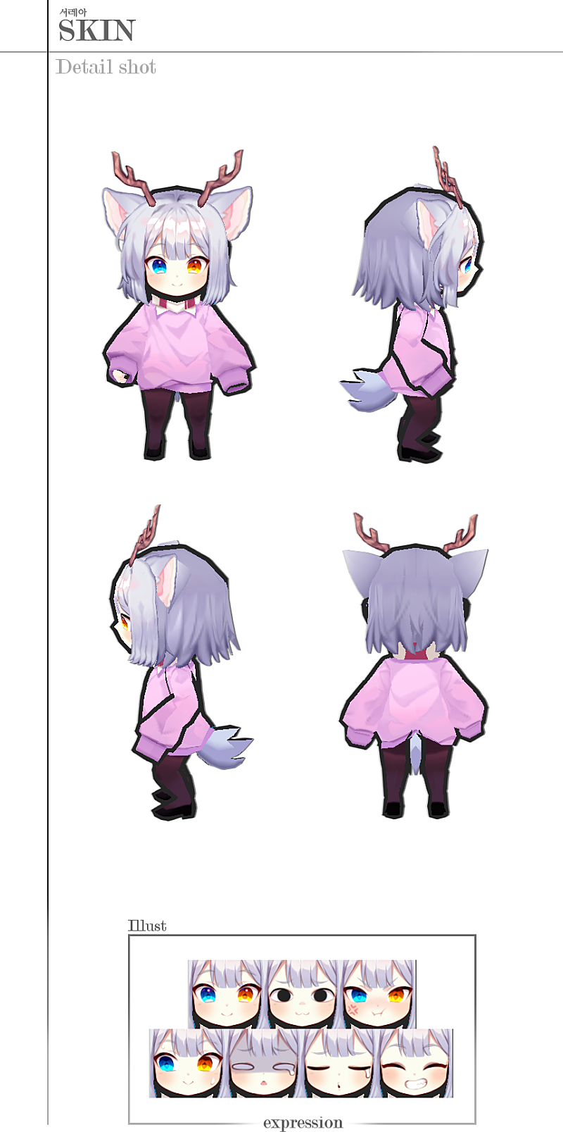 해당스킨은 표정변화가 없고 머리나 얼굴이 없는