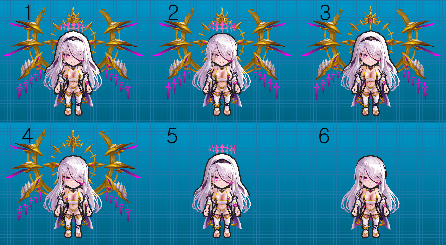 날개, 금관, 천사링 제거 가능하며
